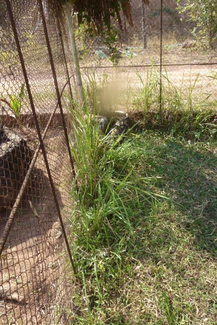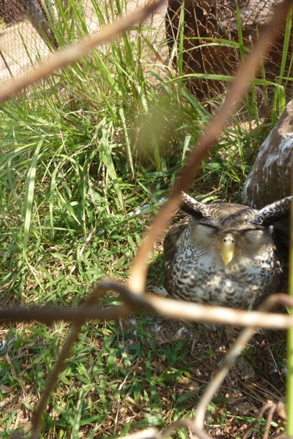 In the corner of this cage {below} the Great horned owl that was trying to hide in the long grass after we stopped some young men from poking it with a stick. Once again it was devastating to have to leave this bird in this enclosure with no protection. It was very easy for us to see how an animal could sustain a broken wing with the complete disrespect so many of the tourists were showing to the animals. This owl appeared deeply stressed and very frightened.
