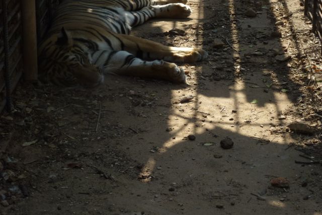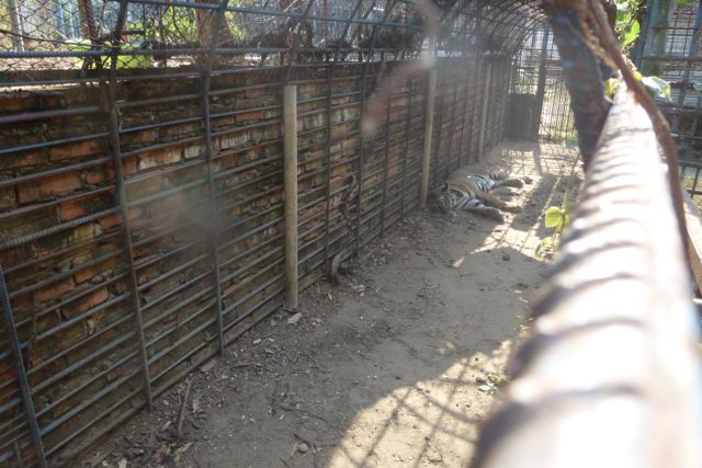 This was the younger tiger that we saw on its own in a small cage. Approx 6m x 4m. Once again it was broken down and the tiger looked very thin.